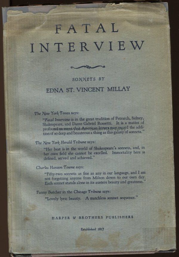 Collection of early 20th century English poetry by one of America's most popular and distinguished poets of her day, Edna St. Vincent Millay.