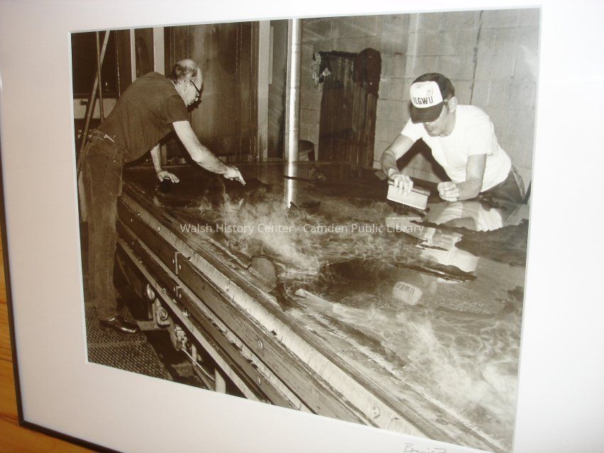 23 black and white framed photographs of the Camden Tanning Corporation interior and employees. The tannery was established in 1954 on outer Washington Street in the former Camden Woolen Company building. These images were taken just prior to the closing of the facility in 1999. The building has since been destroyed.Collection