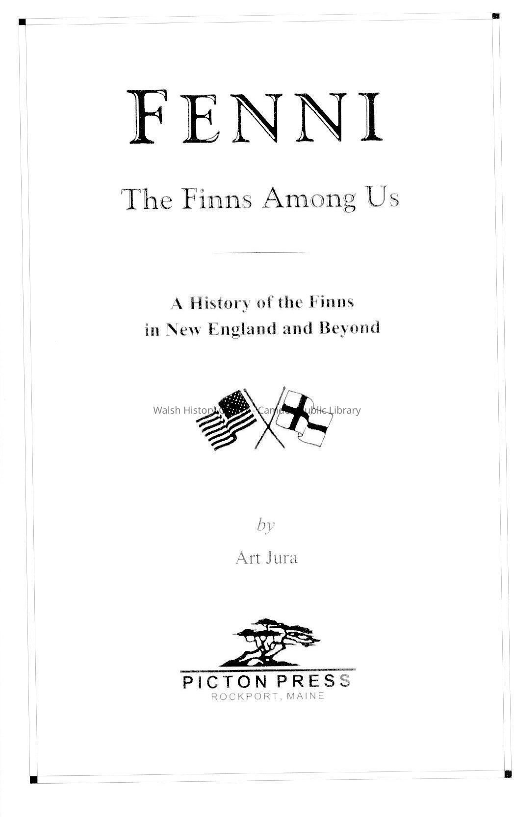 An introduction to Finnish origins, history and emigation with information on how to search for your Finnish roots, how and why the Finns left their homeland and where they settled. Includes early history under both Russian and Swedish rule with chapters covering Maine Finns, churches, and organizations and a specific chapter on the Finnish church in South Thomaston, Maine. Includes photographs and biographies of many families.