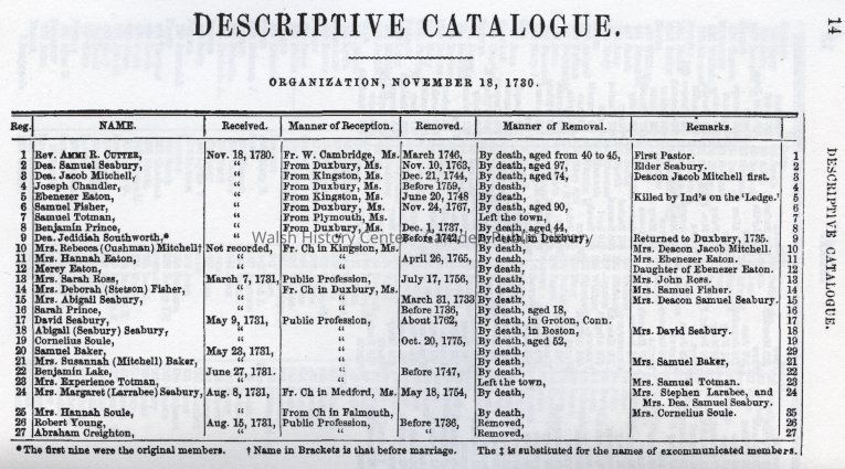 First Congregational Church, North Yarmouth, Maine, Catalogue of Members 1730-1858Entry/Object ID