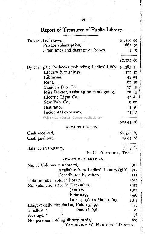 A "Report of Treasurer of Public Library"Other Names and Numbers