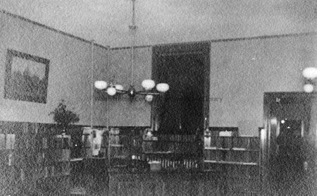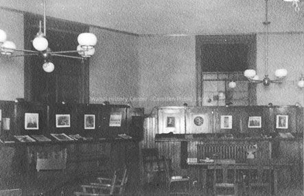 3" x 4.5" photograph of first Camden Public Library reading room.Description
