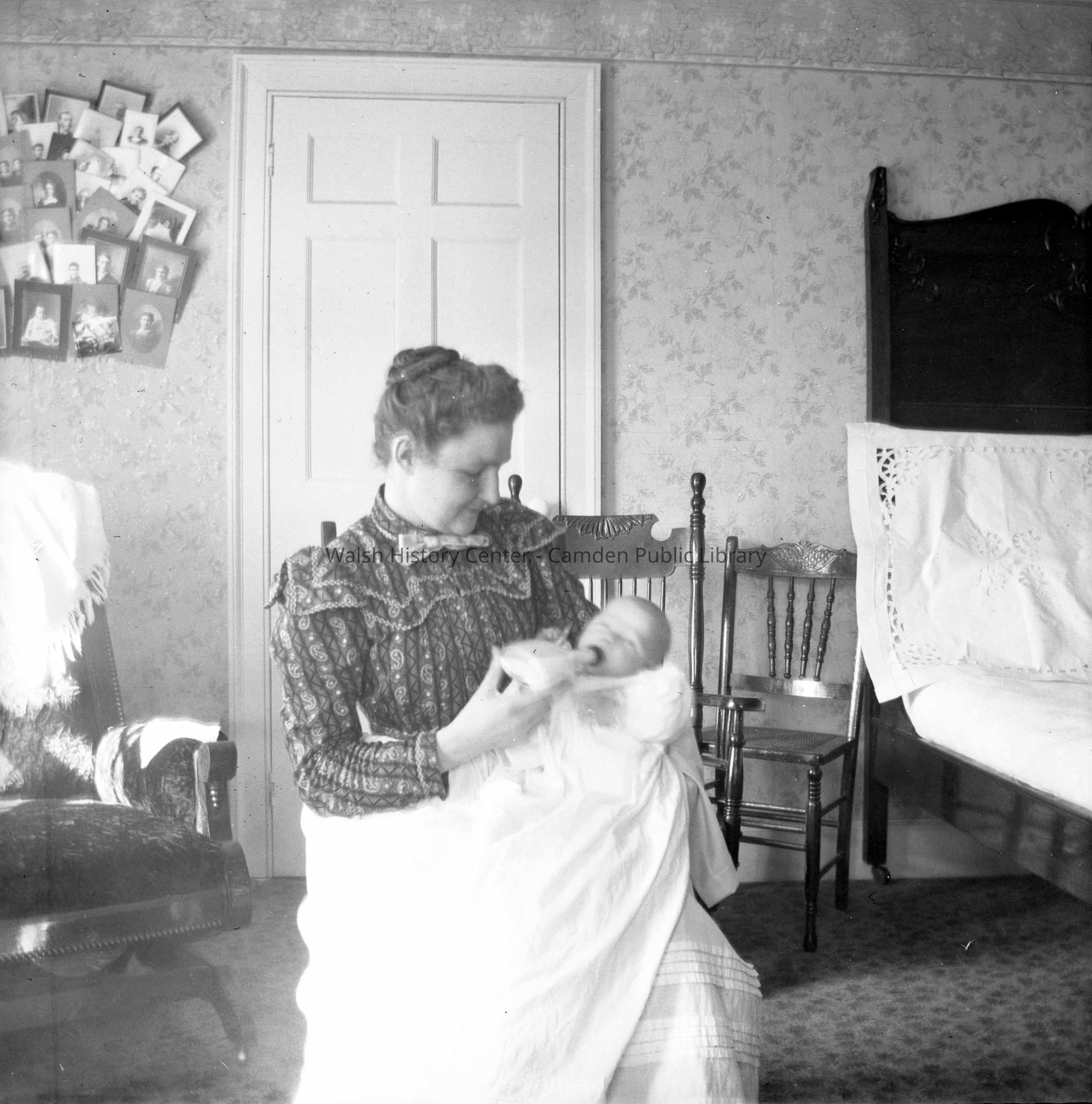 B/w photo of a seated woman labeled "Flora and baby Norman"Collection