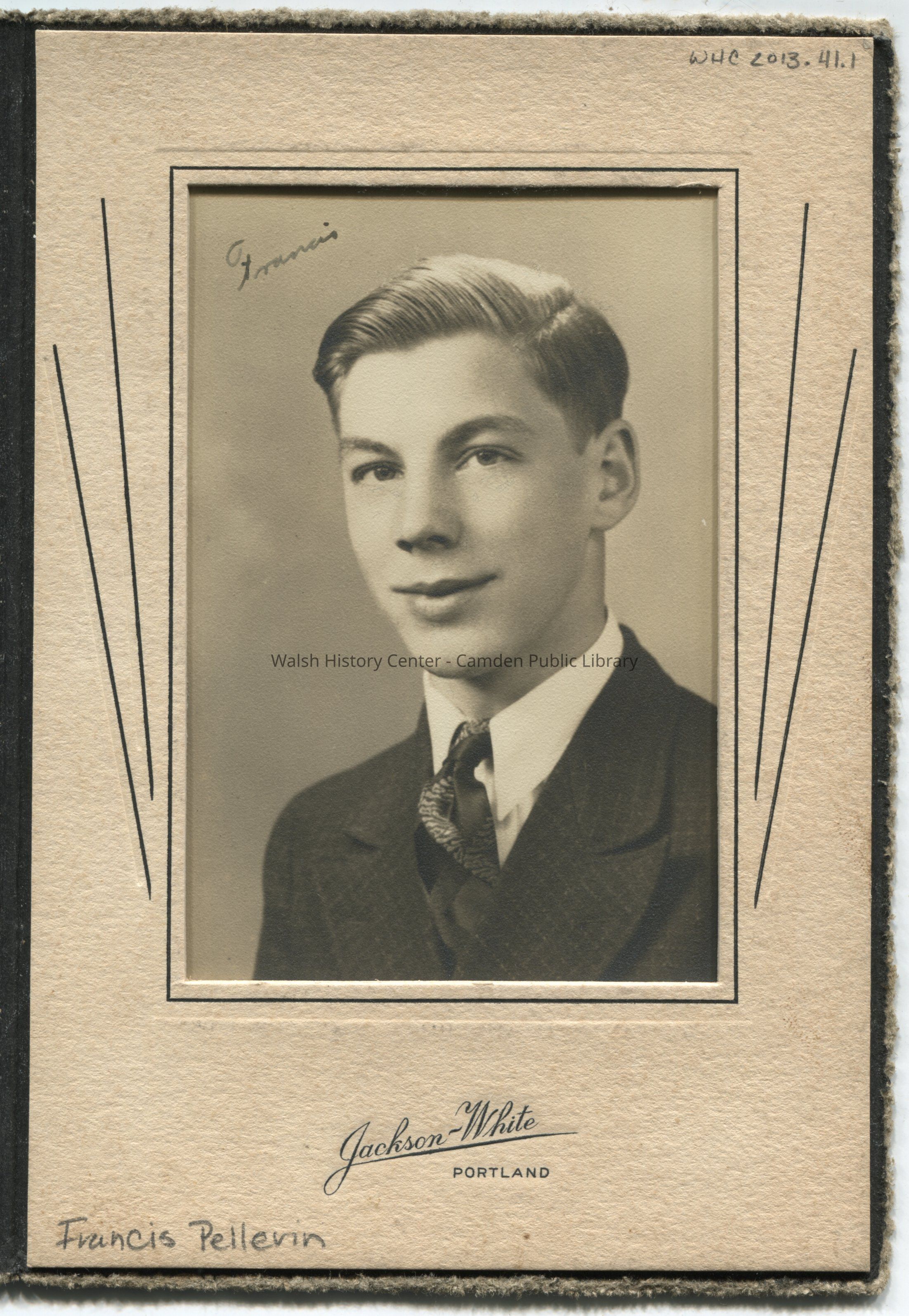 Photograph in cardboard mat of Francis Pellerin.Collection