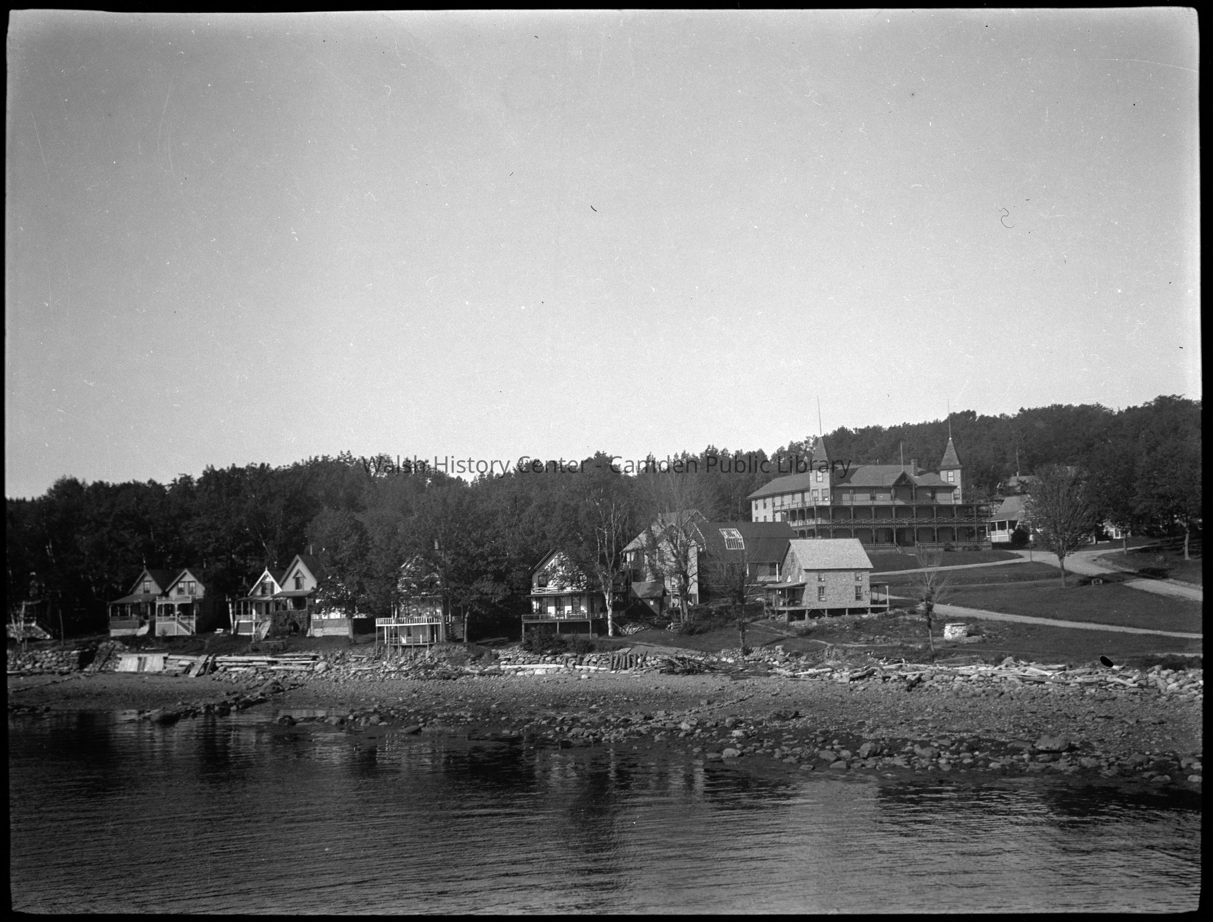 Collection of photographic negatives found in the home of the late Bill Chapin of 6 Mountain Street in Camden. The house previously belonged to photographer Frank L. Harris, who is listed in the 1903 Town Directory as a foreman at the Camden Herald newspaper. His studio operated from 1905-1924. Photos appear to be of a trip on the steamboat to Bangor in August 1909, Harry B? with chickens and hunting dogs in 1913, and negatives possibly relating to the Hobbs family.Collection