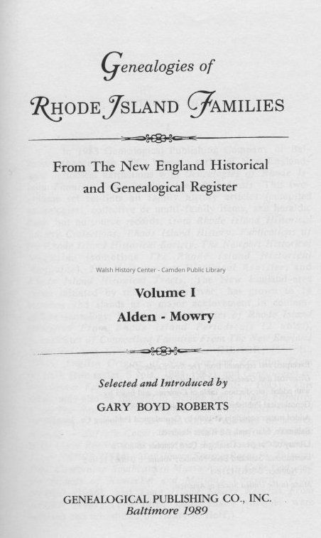 Genealogies of Rhode Island Families, Volume I, Alden - MowryEntry/Object ID