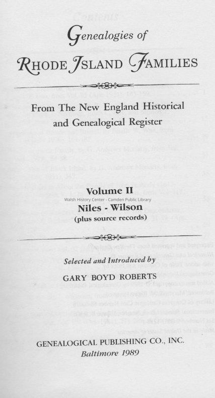 Genealogies of Rhode Island Families, Volume II, Niles-WilsonEntry/Object ID