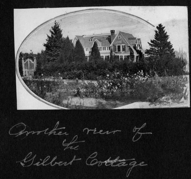 Scanned copy of page 5 (verso) of Cyrus Porter Brown leather photo album. Includes image of the Gilbert Cottage cut out from J.R. Prescott's guidebook "Glimpses of Camden."Collection