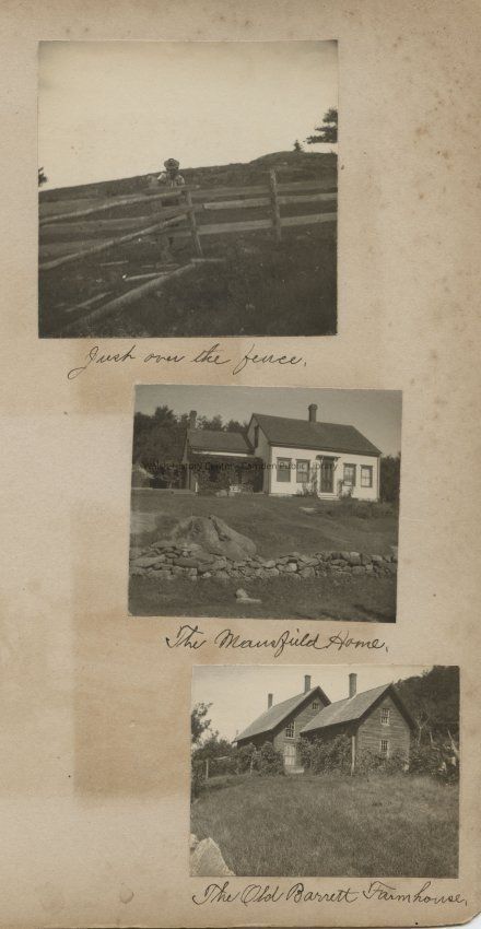 Woman on opposite side of split rail fence; the Mansfield House, Camden, Maine; the William Barrett farmhouse, Camden, Maine
