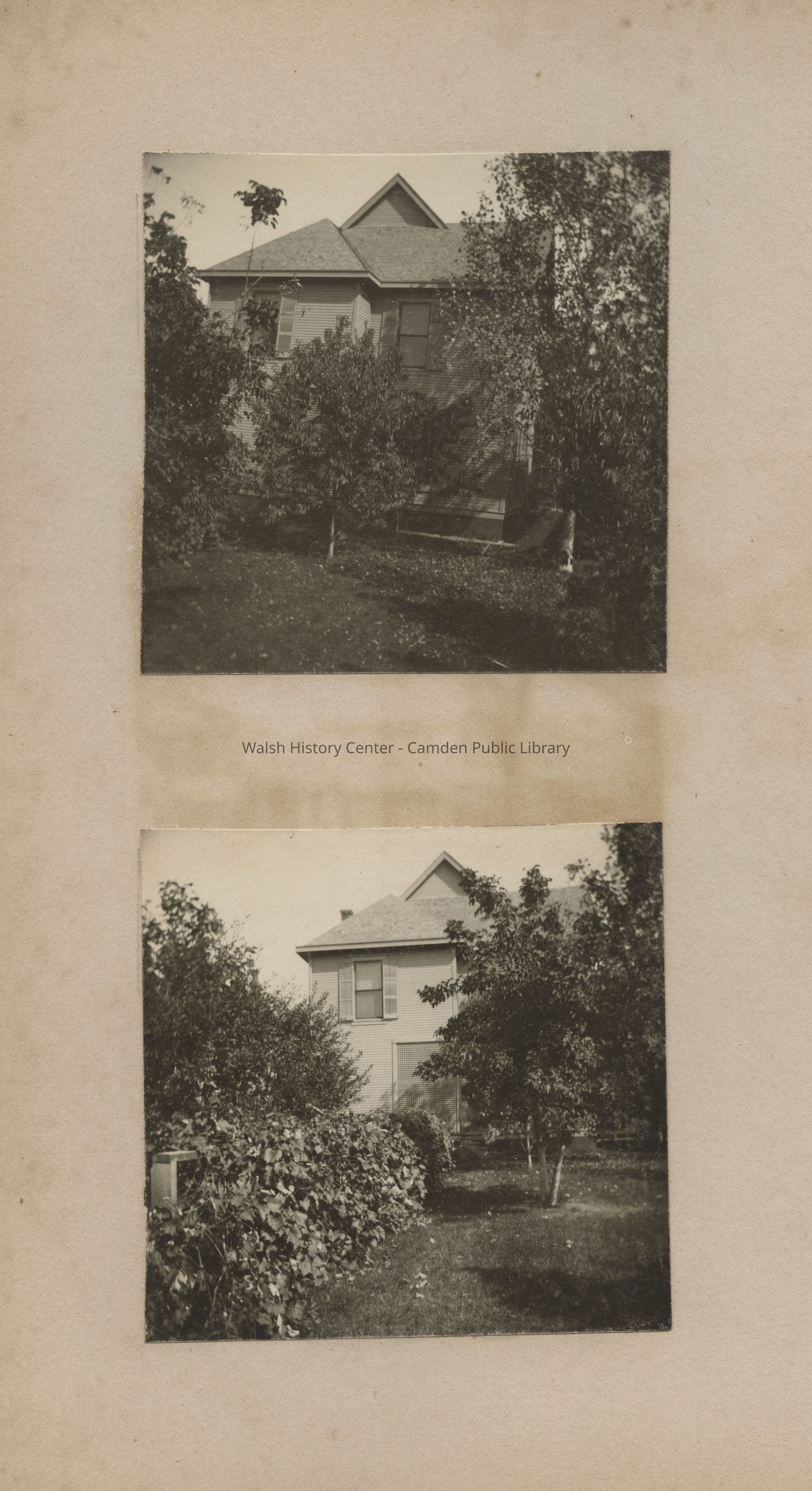 Photo album c 1898-1899, B&W photos, 3.3" square, 95 pages, two images per page, mounted on heavy cardboard pages. The Gookin cottage on Lake Megunticook and presumably the Gookins and friends are the subjects. Mary Isabel Cleveland Gookin is likely the photographer.