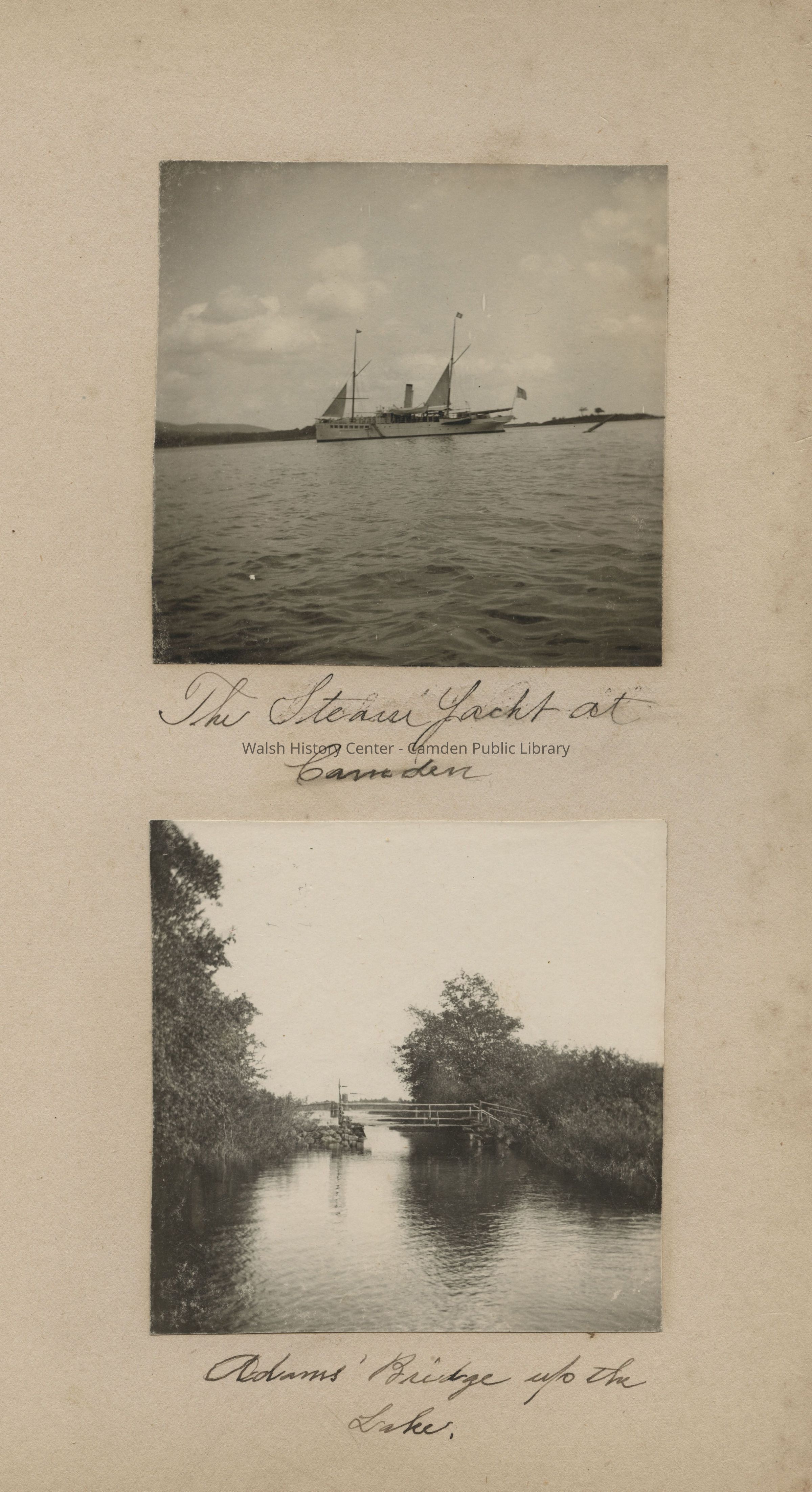 View of the Steam Yacht in Camden Harbor; View of Adams' Bridge on Lake Megunticook, Camden, Maine