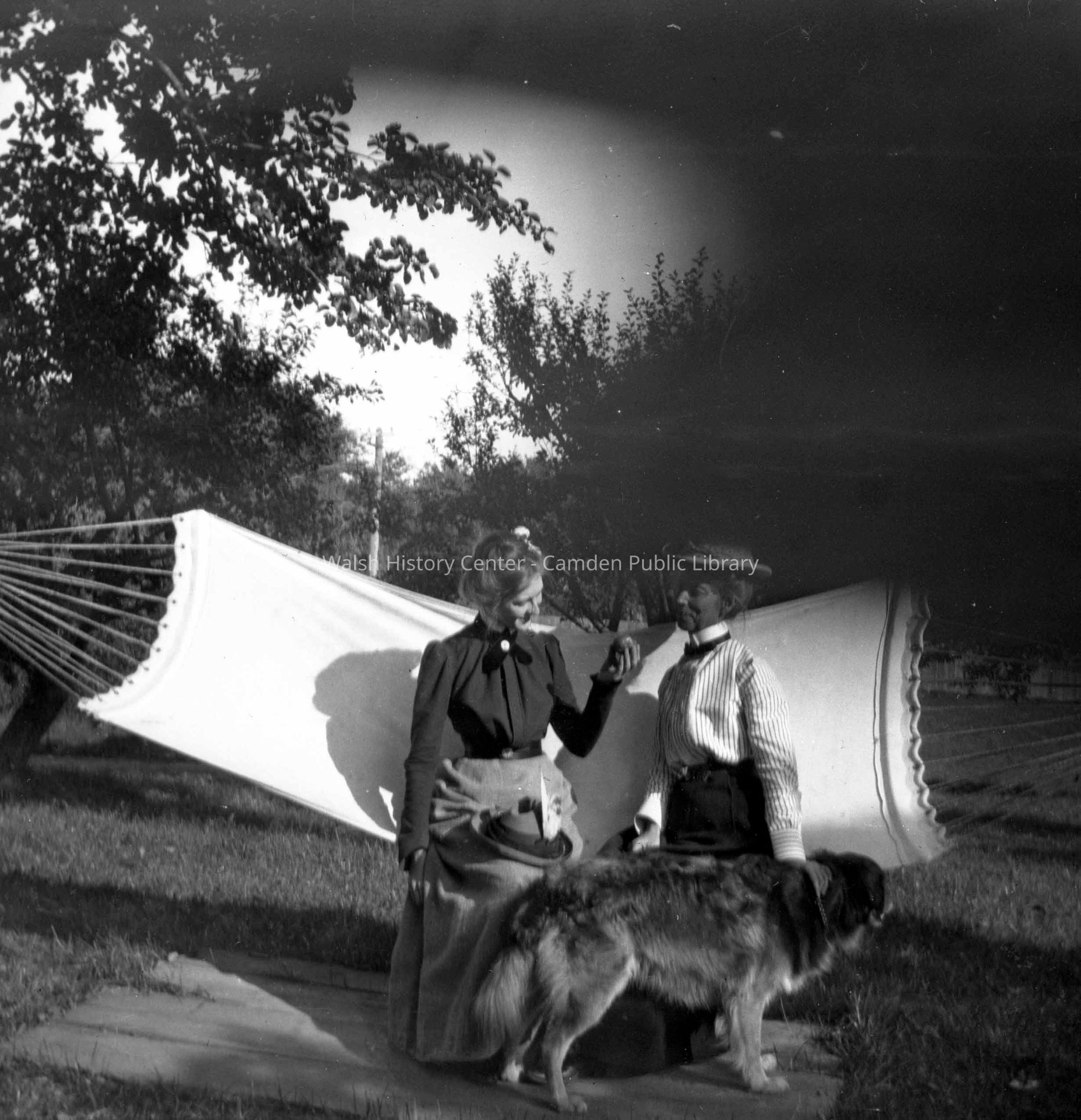 B/w photo of Grace Parker (left) and Lillie seated in a hammock in September 1900Collection