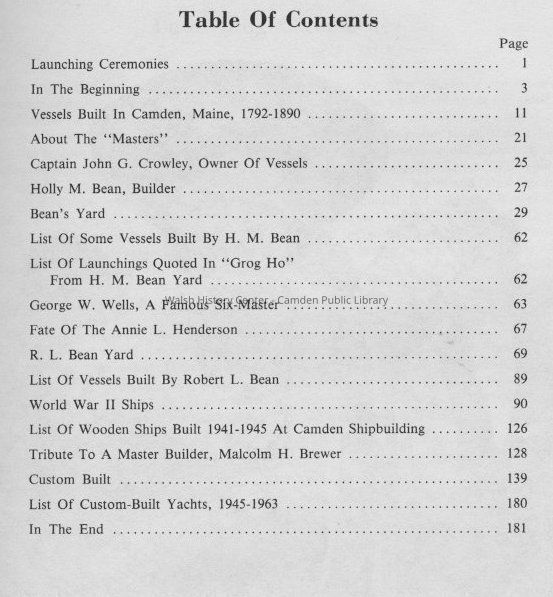 The complete history of ship building around Camden harbor with an emphasis on the Holly Bean Yard and that of the former Camden Shipbuilding and Marine Railway Yard. Numerous pictures are interspersed in the narrative.