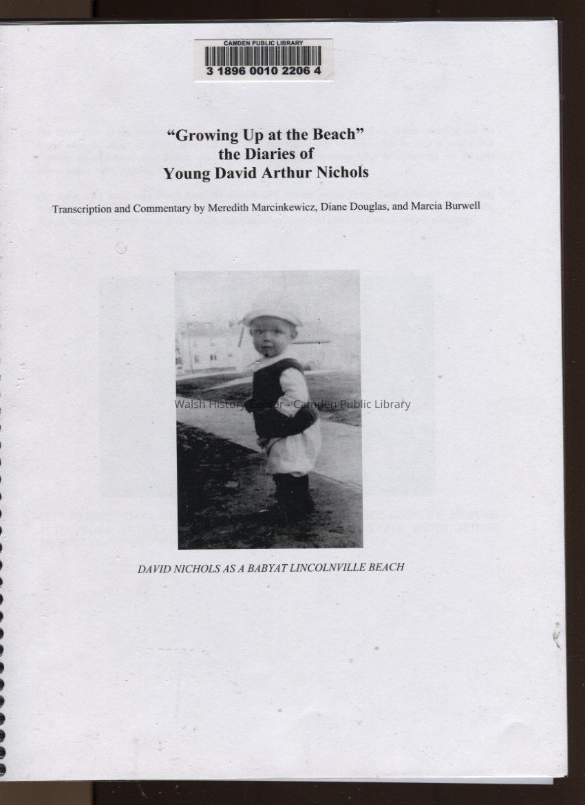 Transcription of the childhood diaries of David A. Nichols by his niece Meredith Marcinkewicz. Nichols grew up at Lincolnville Beach, Maine, and wrote his diaries in composition books from 1924-1930. Contains notes and names from Lincolnville Beach, Maine in the 1920s.