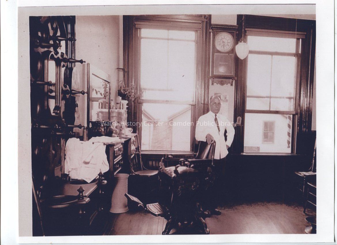 Print of scanned photo of Guy Cucinotta, a barber in Camden, Maine who's shop was located above Boynton-McKay Drugstore (22 Main Street) in 1927.Collection