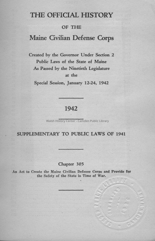 A detailed summary of the founding of the Maine Civilian Defense Corps in the 1940's by town and region.