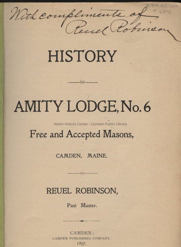 History of Amity Lodge, No. 6, Free and Accepted Masons, Camden, MaineEntry/Object ID