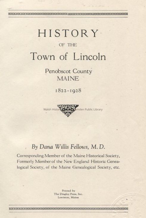 History of the Town of Lincoln, Penobscot County, Maine 1822-1928Entry/Object ID
