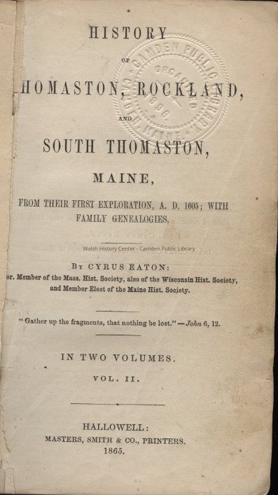 History of Thomaston, Rockland, and South Thomaston, MaineEntry/Object ID