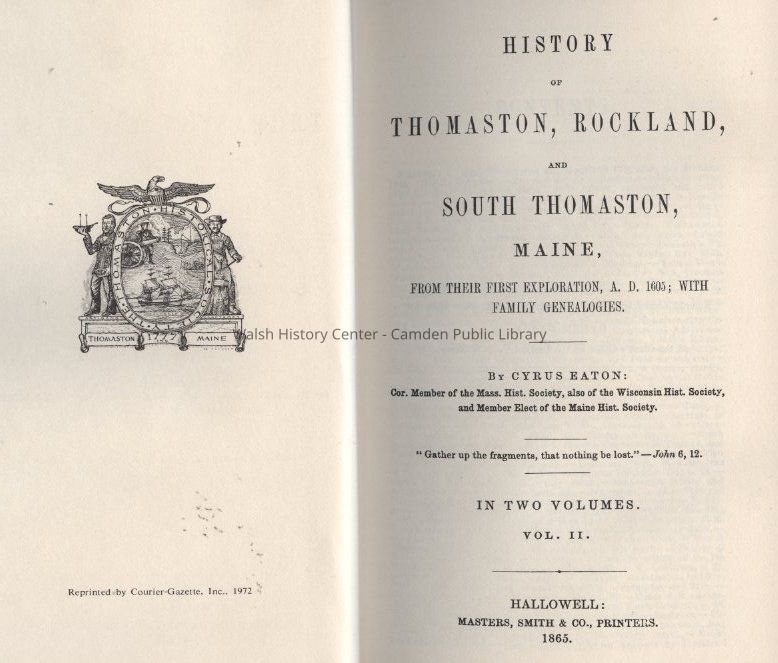 History of Thomaston, Rockland, and South Thomaston, MaineEntry/Object ID
