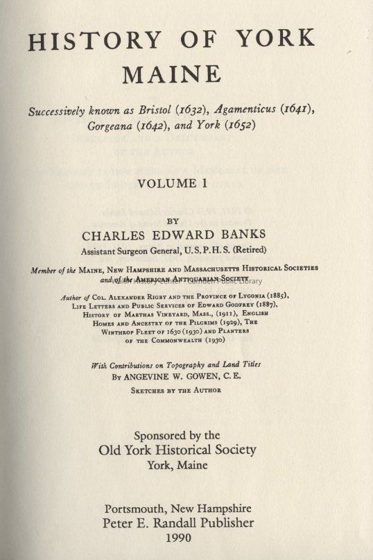 Banks, Charles Edward, Sponsored by the Old York Historical Society, York, MainePublisher