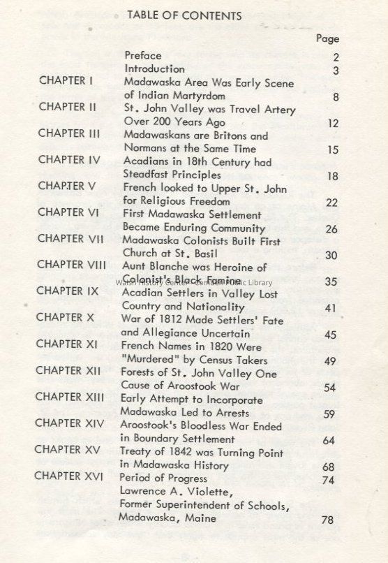 History of the Acadian settlements in the St. John Valley, Aroostook County, Maine and Madawaska County in New Brunswick, Canada. This an English-version revision of the "Histoire du Madawaska" published in 1920 by Rev. Thomas Albert.