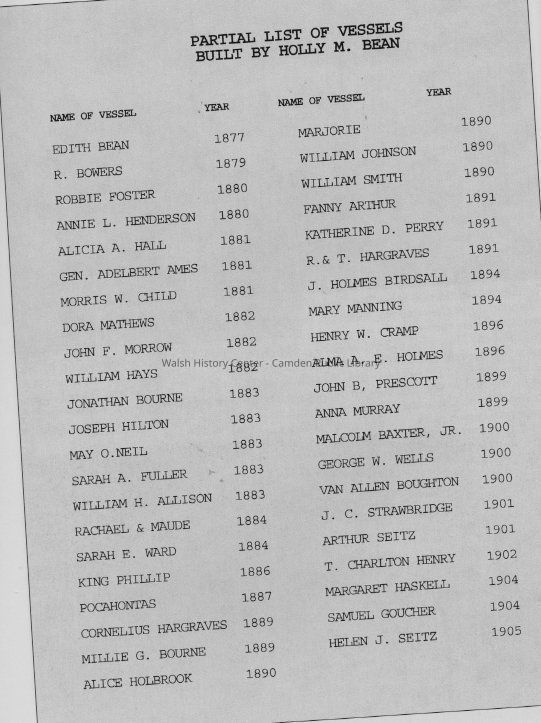 Camden Shipbuilding and Marine Railway Yard, Holly Bean Shipyard, Holly M. Bean & Co. ShipyardOther Names and Numbers