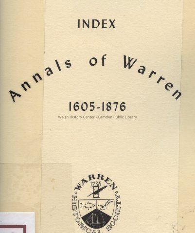 A second edition index to Cyrus Eaton's Annals of Warren in honor on Maine's Sesquicentennial Celebration.