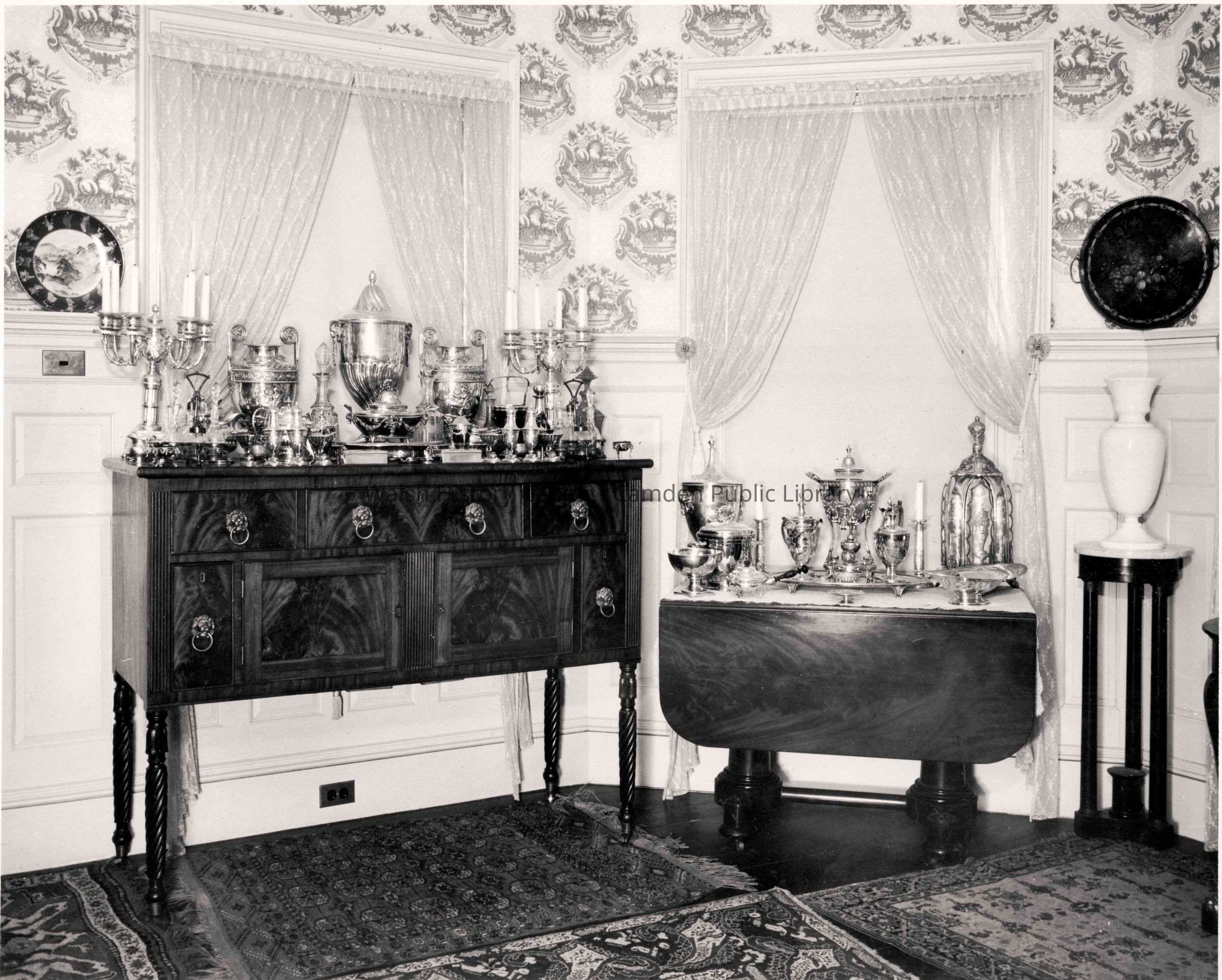 Scanned copy of photogragh from "Hill Acres" estate album. Original album owned by Lyn Woods, Camden, ME. Interior of dining room.Collection