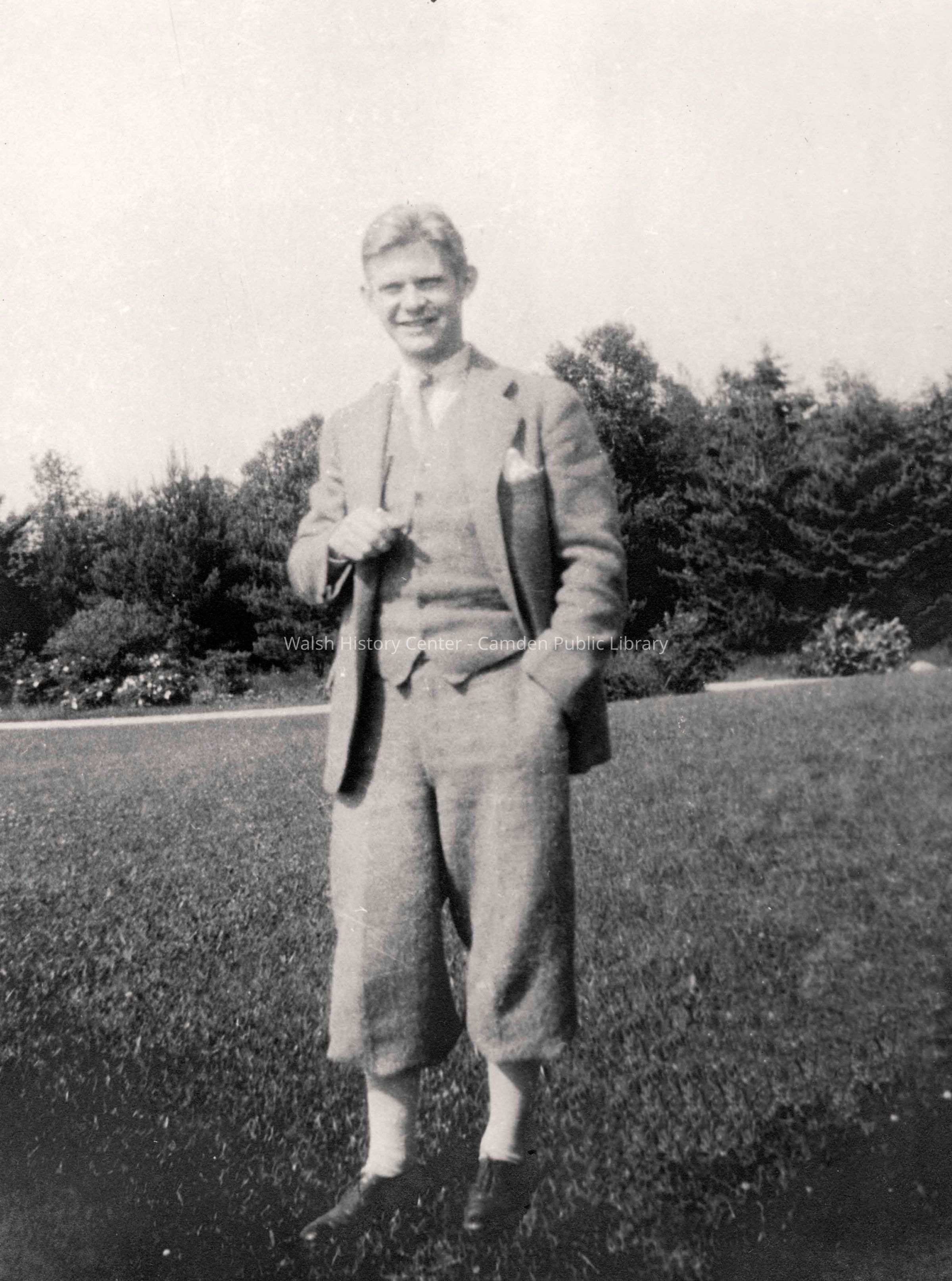 Scanned copy of photogragh from "Hill Acres" estate album. Original album owned by Lyn Woods, Camden, ME. Labeled on back of original: "John Codman - Camden, Maine, July 1928. Taken on the lawn at Hill Acres."Collection