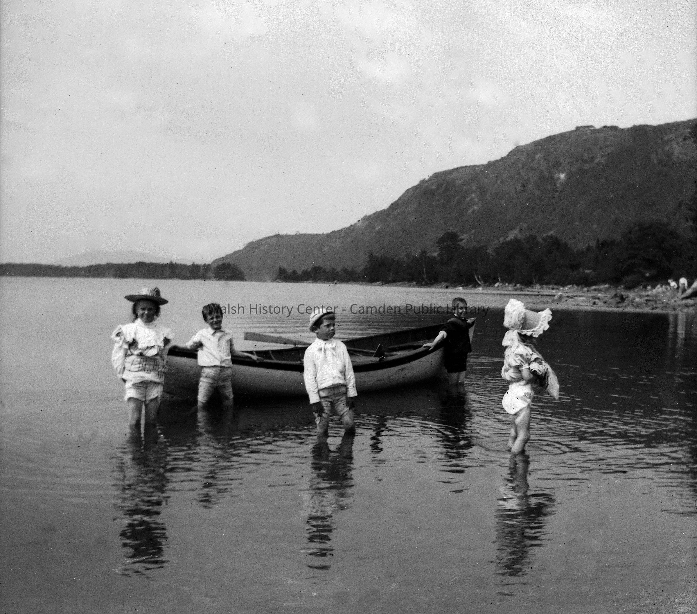 Photograph of children wading in Megunticook Lake in Camden, Maine in August 1899.Collection