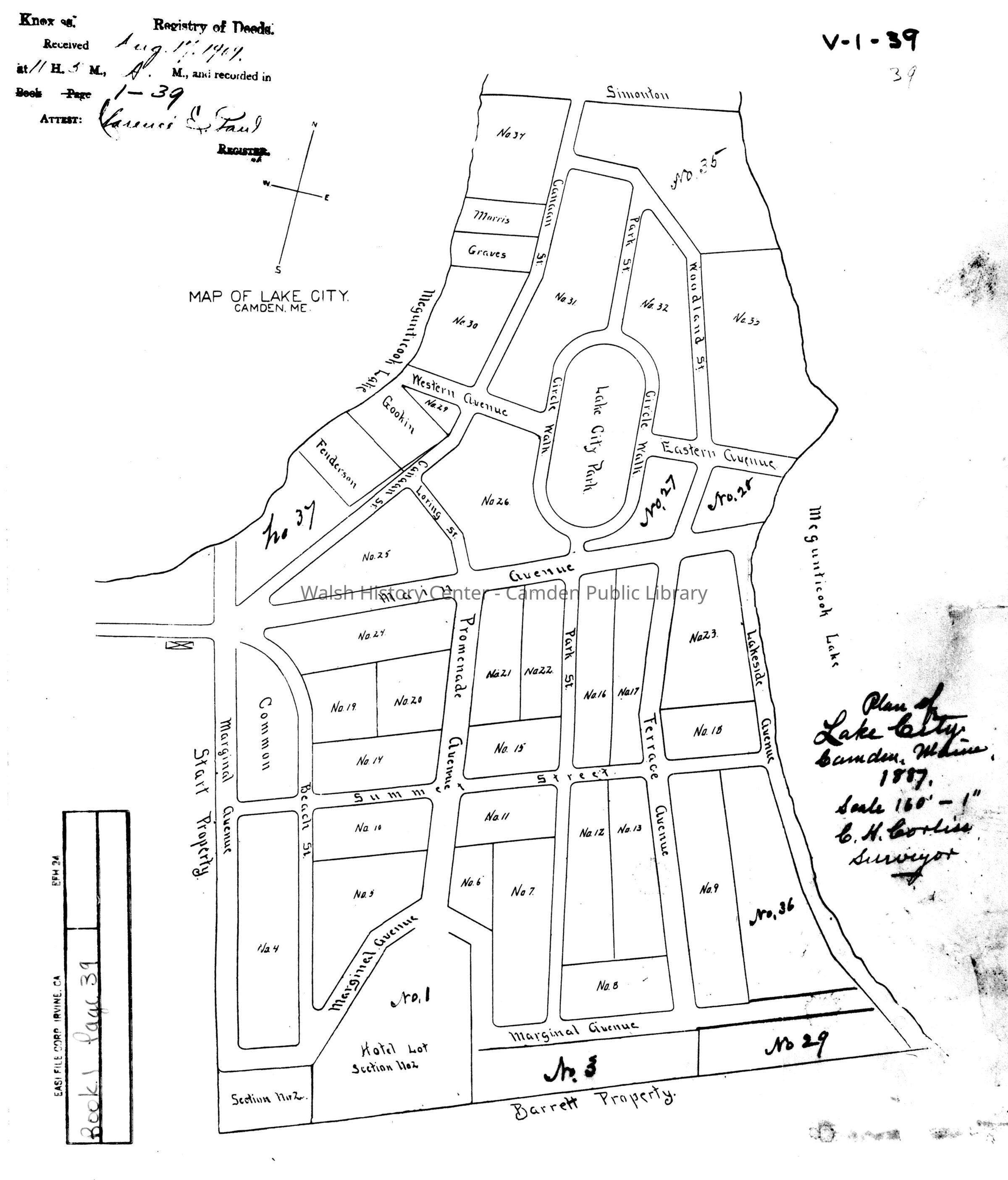 Print of map of Lake CIty, Camden, Maine, 1887, C. H. Corliss, surveyor.