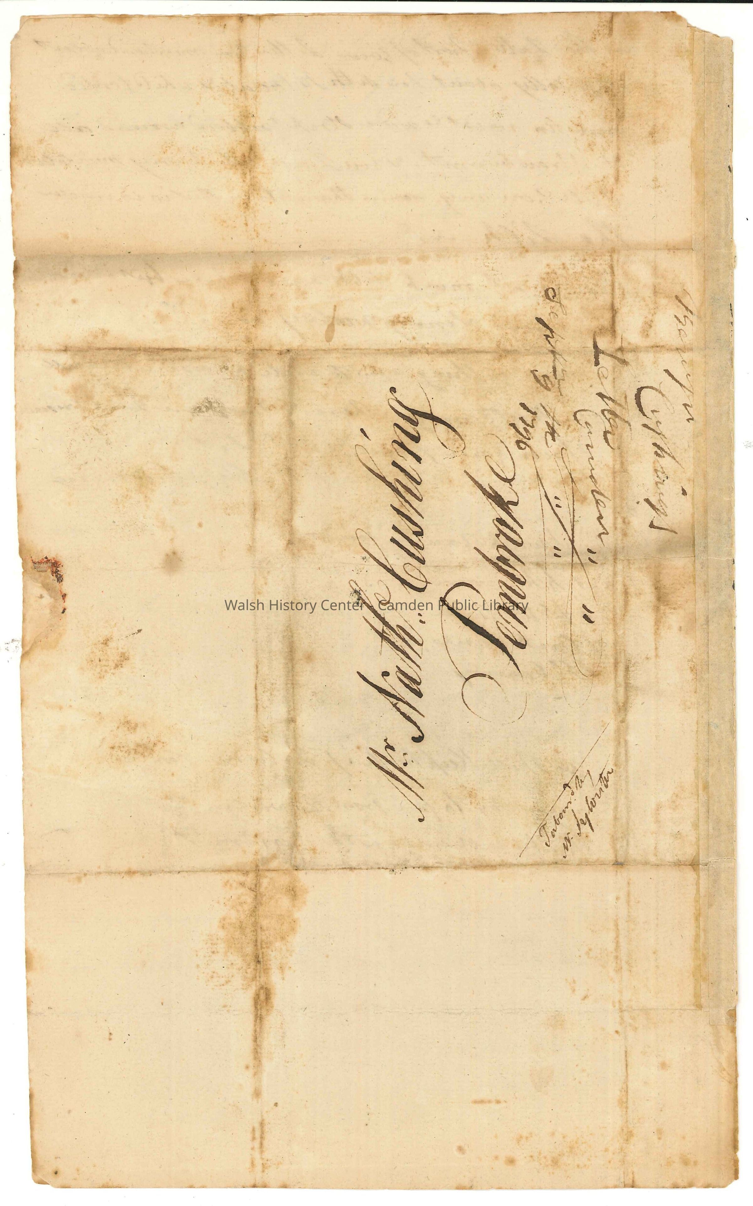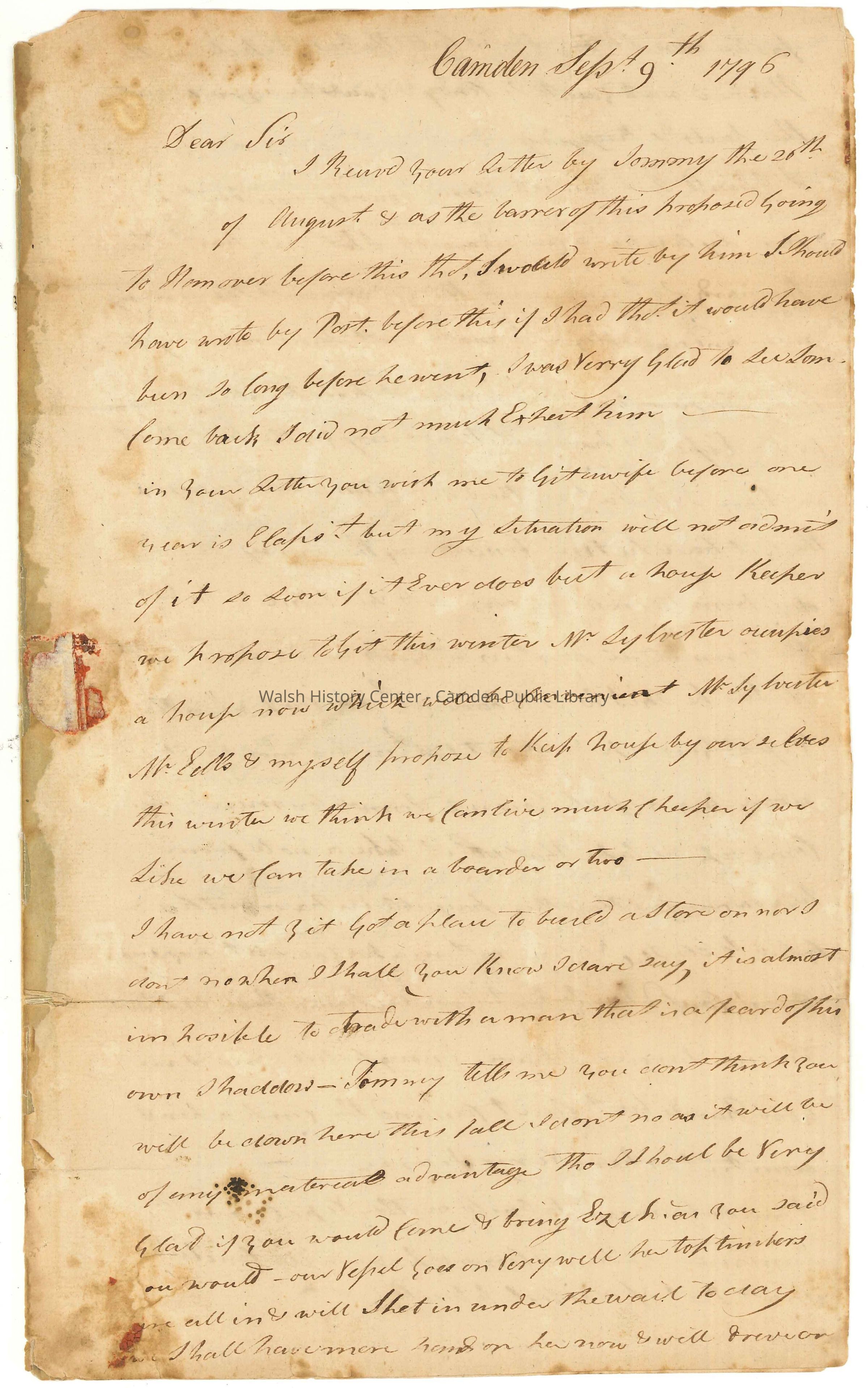 A letter from Benjamin Cushing to Nathaniel Cushing, dated September 9th, 1796.Collection