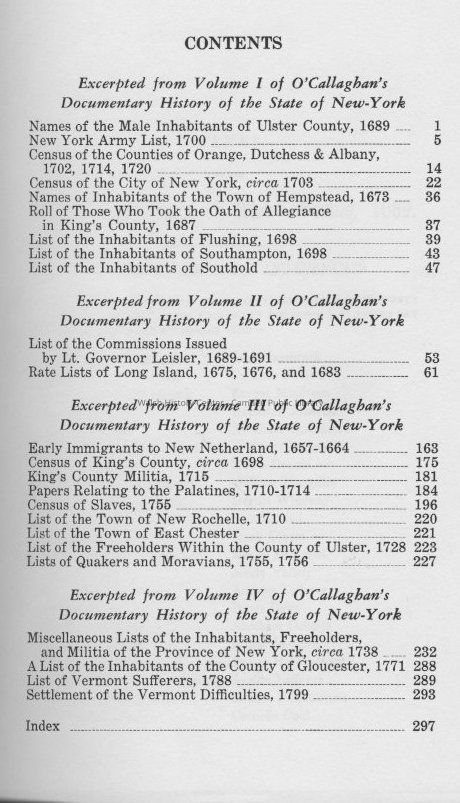 Extract of all important genealogical records in Edmund Bailey O'Callaghan's Documentary History of the State of New-York, published in four volumes between 1849 and 1851.