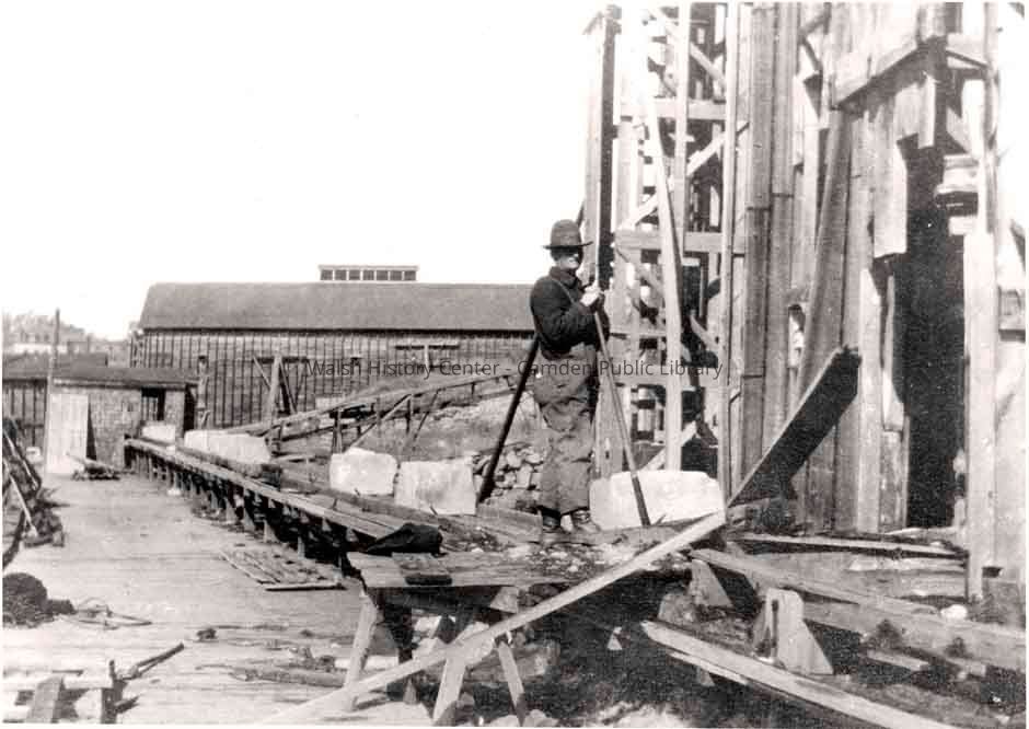 Loading ice at the Rockport ice sheds circa 1904.Collection