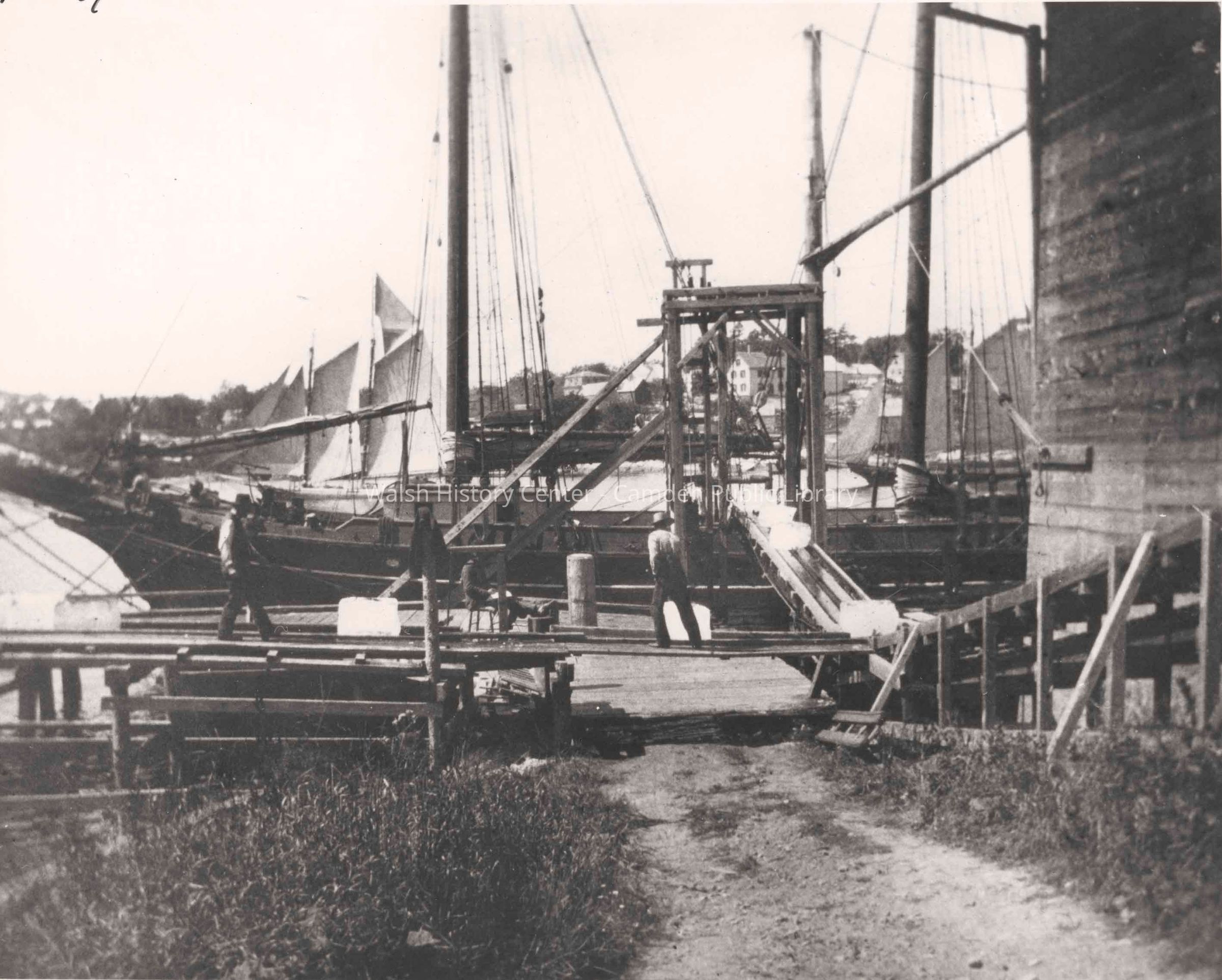 Loading ice cakes in Rockport Harbor. Ice was cut from the pure waters of the Lily Pond and stored in icehouses along Rockport Harbor for transport down the coast as far as the West Indies.Collection