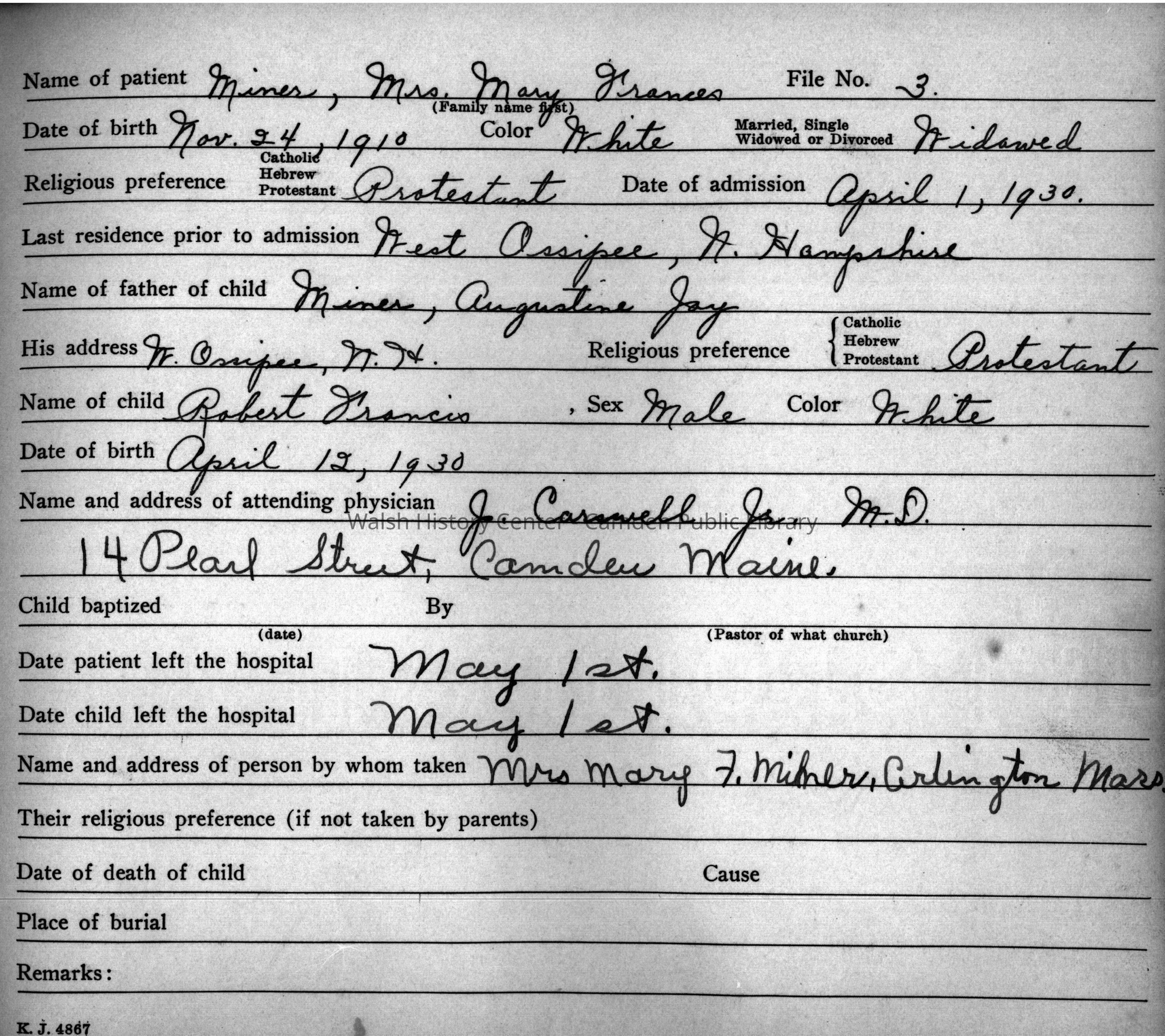 Moody Maternity Home, Camden, MaineArchive Details