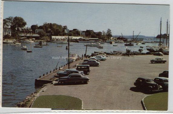Postcard of a color photo taken from the Public Landing off Bayview Street in Camden, Maine. The photo shows Wayfarer Marine in the background, and Curtis Island in the far right background.Collection