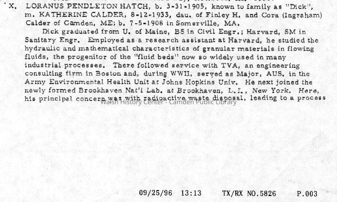 Photocopy of abbreviated biography of L. P. Hatch faxed by his family from their archives.Collection