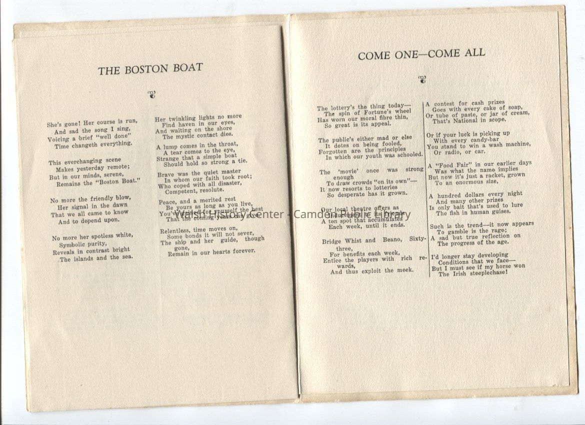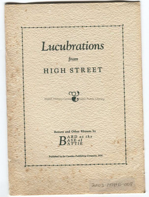 "Lucubrations from High Street: Retorts and Other Rhymes by the Bard at the Base of Battie." Poems by Standish Perry, published by the Camden Publishing Company, 1936.Collection
