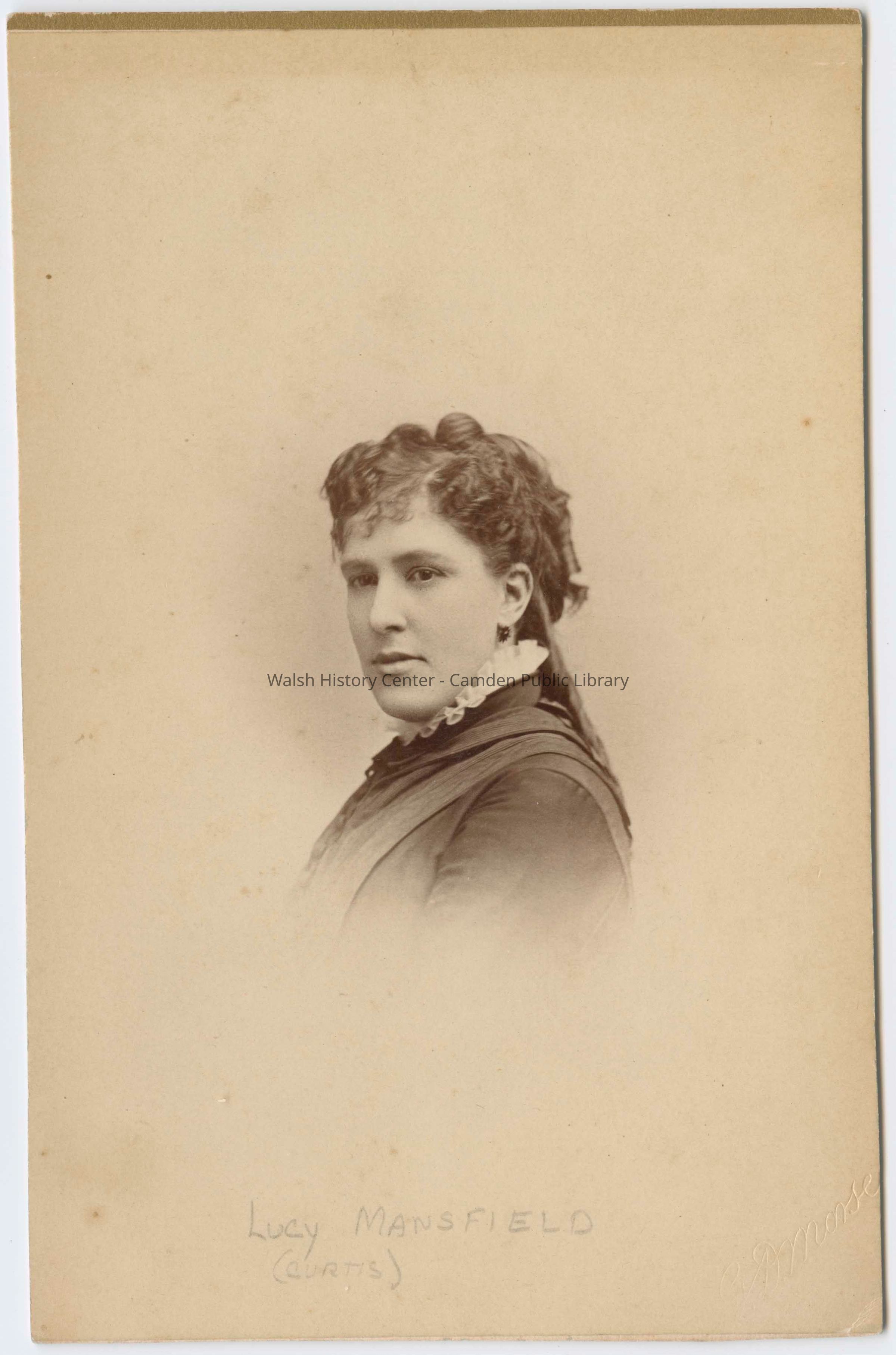Sepia cabinet card photograph of Lucy Curtis Mansfield of Camden, Maine. She married George F. Mansfield of Boston in 1882Collection