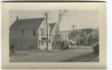 Small black and white photograph of Main Street in Camden looking south.Collection