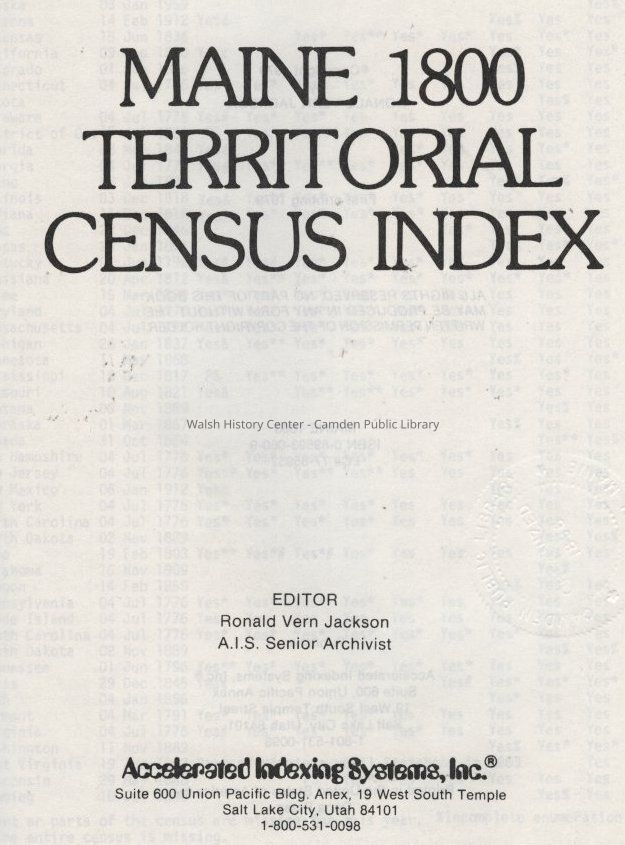 Maine 1800 Territorial Census IndexEntry/Object ID