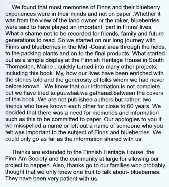 Spiral bound book entitled, "Maine Finns and Blueberries in the Mid-Coast" by Steve Gifford and June Ranta Wilcox.