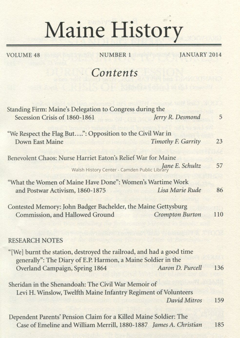 Maine History, published quarterly by the Maine Historical Society, Volume 48, January 2014.