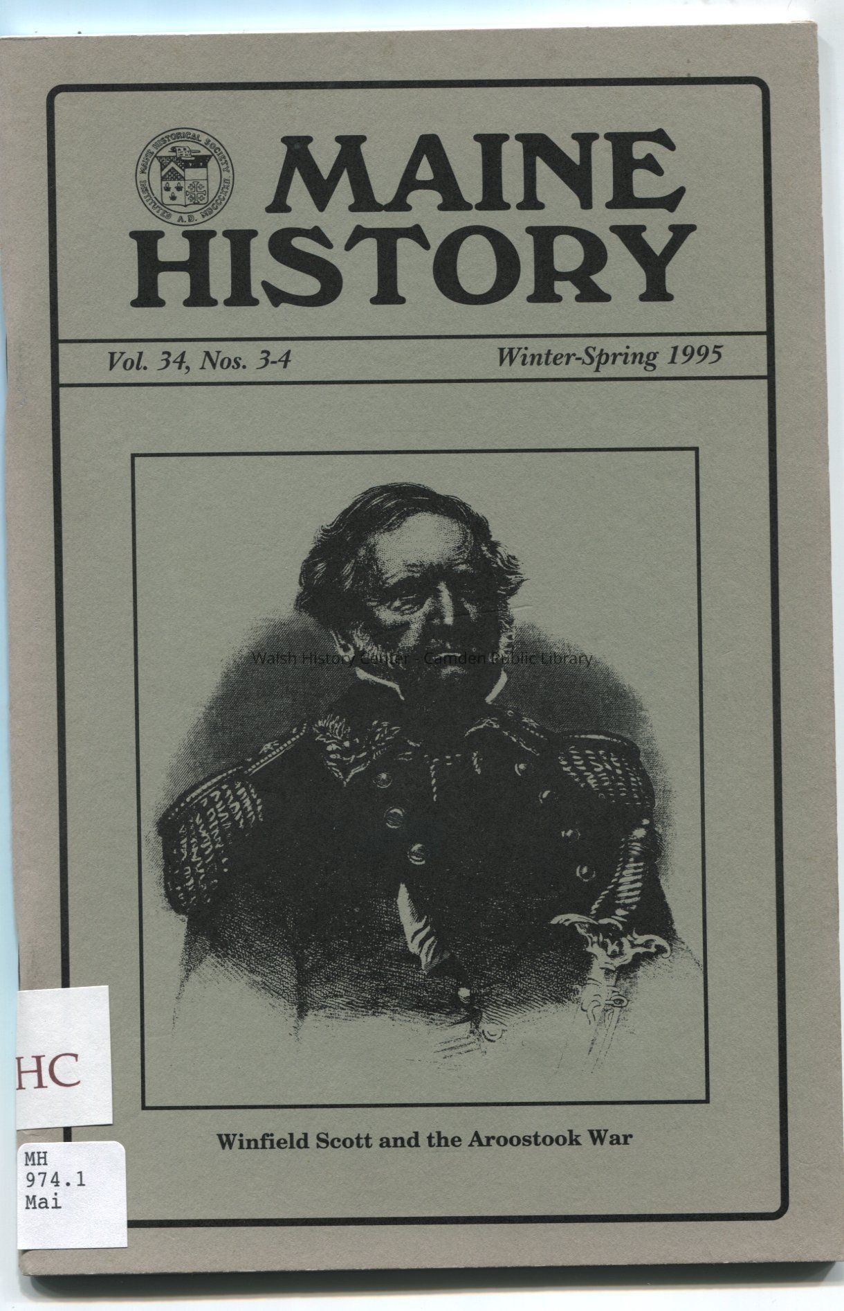Maine History journal, Vol. 34, Nos. 3-4, Winter-Spring 1995. Includes article on Winfield Scott and the Aroostook War.