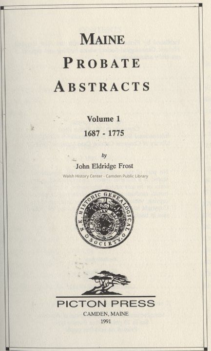 Maine Probate Abstracts 1687 - 1775, Volume 1Entry/Object ID