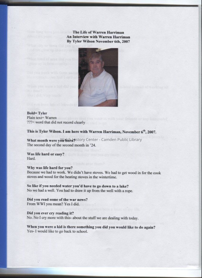 Manuscript of interview with Warren Harriman. (CD of transcript also available.)Collection