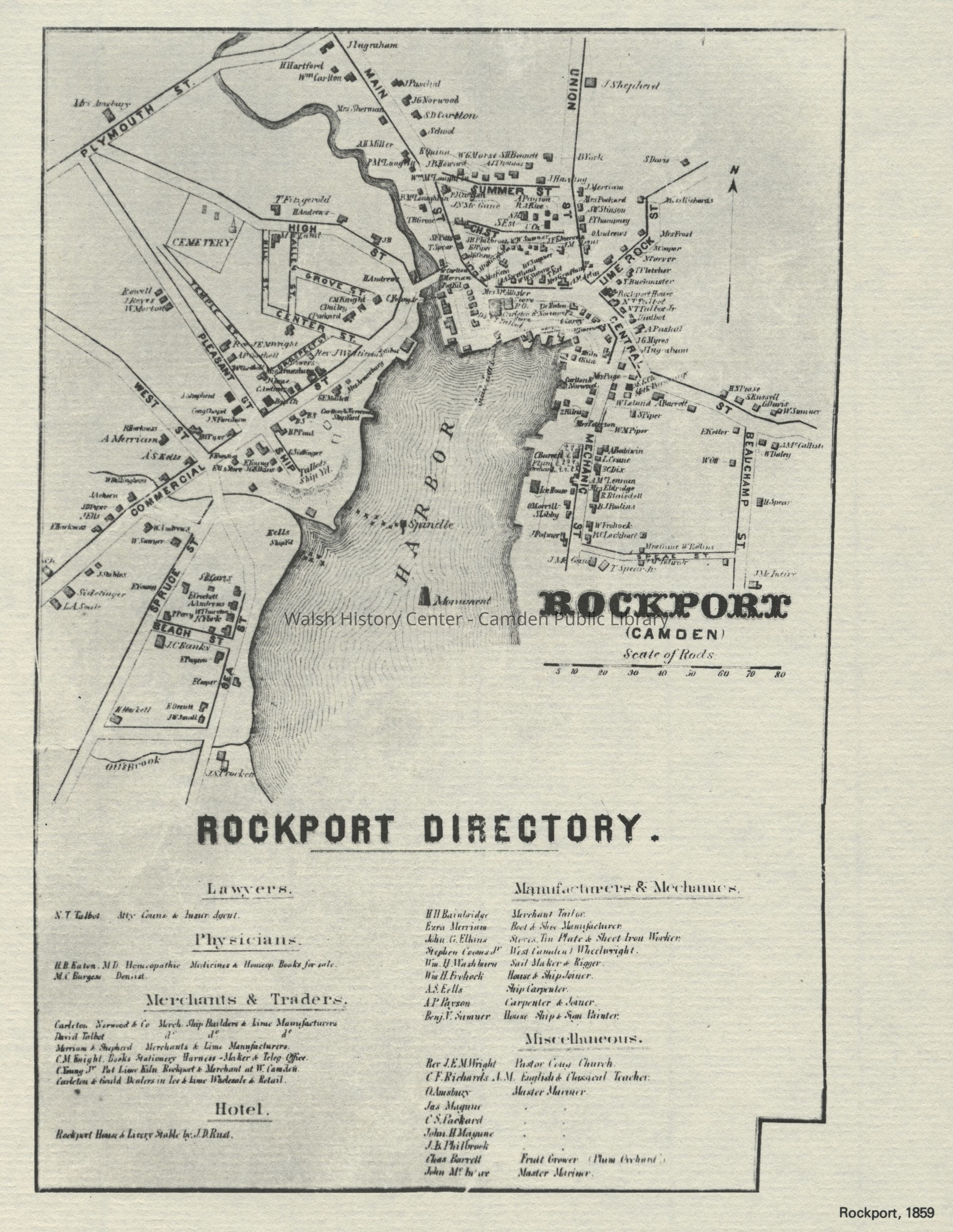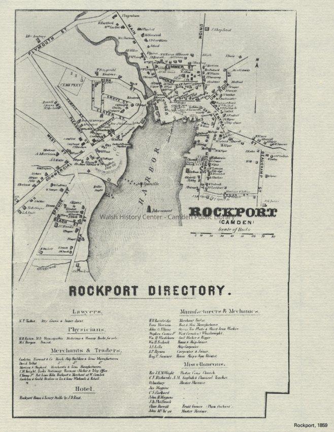 Map of Rockport as it appeared in 1859. This was likely copied from a 1859 town directory.Collection