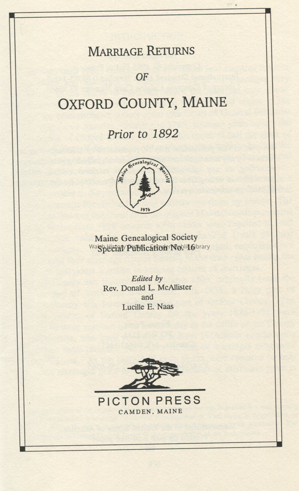 Oxford County, Maine, Marriages, Vital RecordsOther Names and Numbers